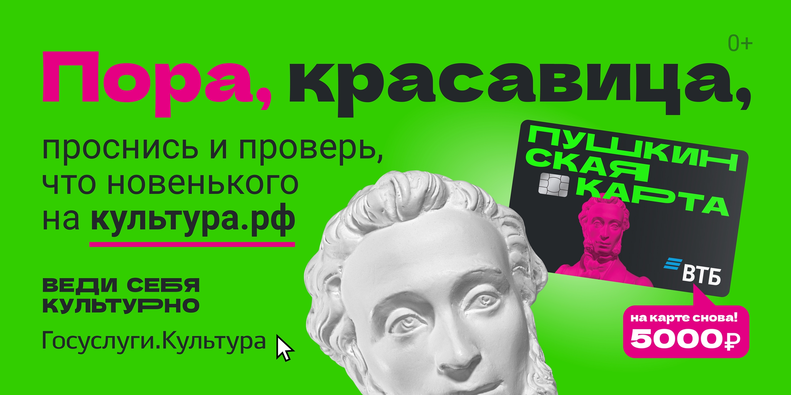 1. Оформи карту через «Госуслуги. Культура» culture.gosuslugi.ru/или на сайте Банка ВТБ www.vtb.ru/personal/k...